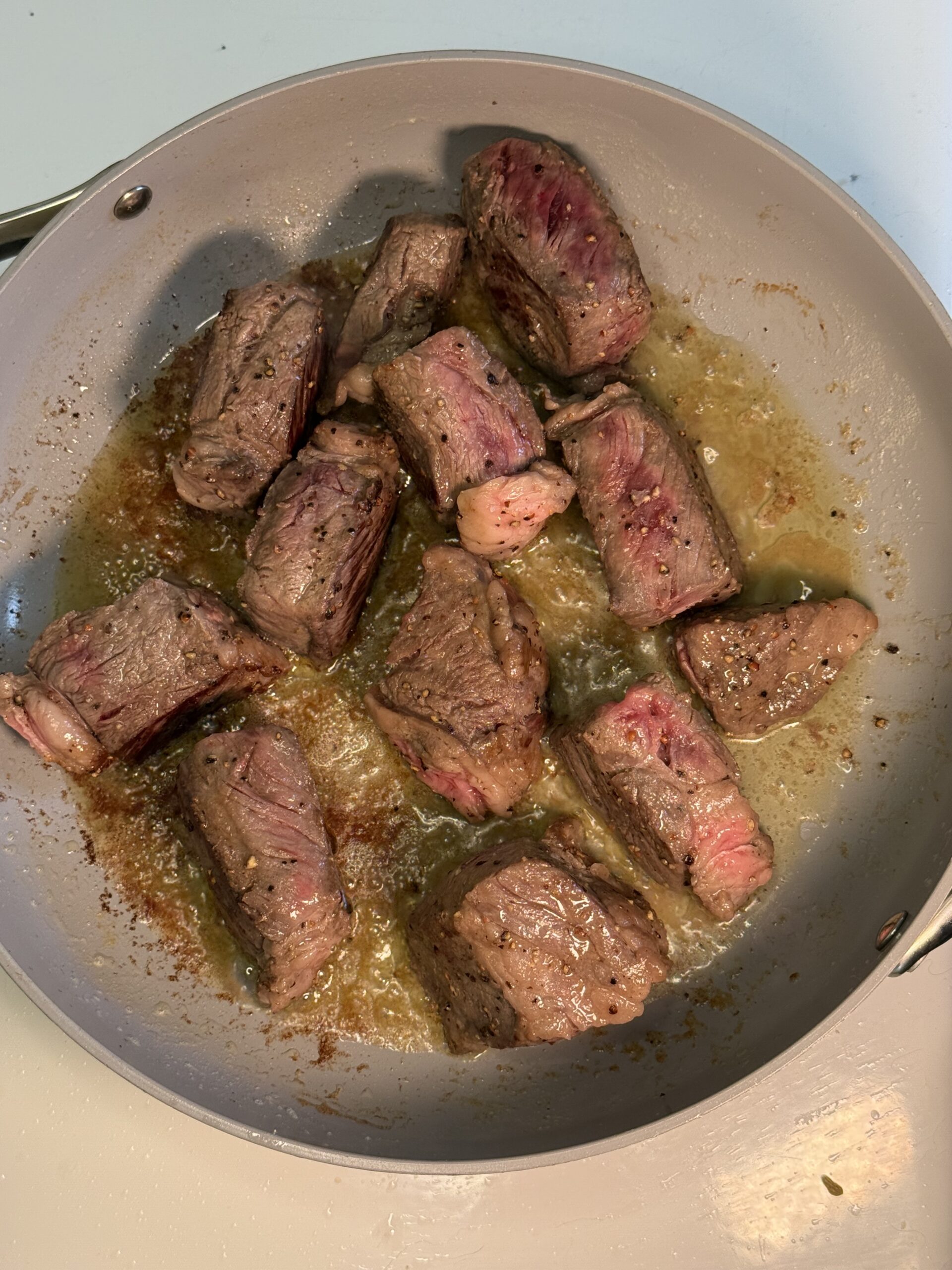 - Sear the beef on all sides until browned (2–3 minutes per side).