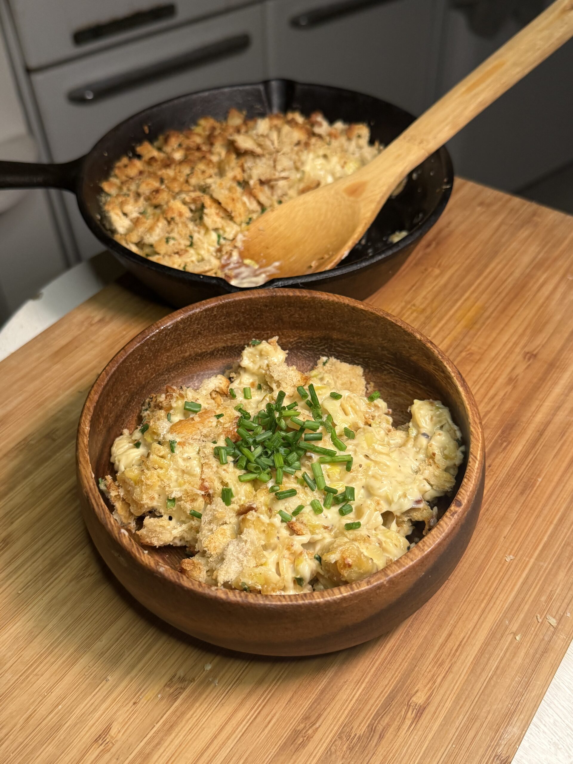 Garlic & Leek Mac & Cheese with Homemade Butter Herbed Breadcrumbs