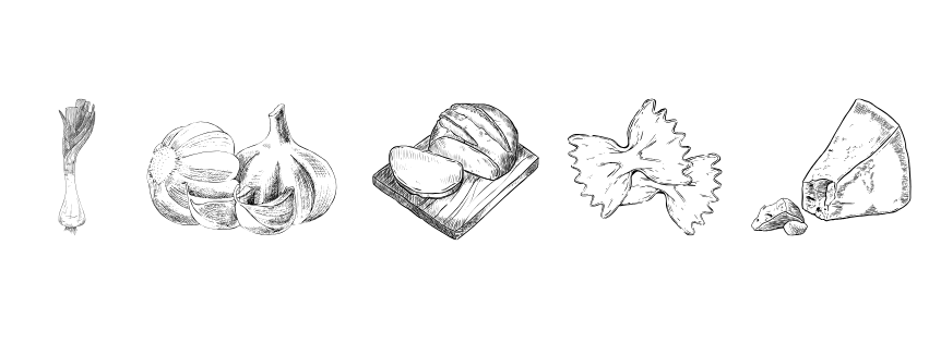 - Boil the pasta until just under al dente; drain. Meanwhile, sauté sliced leeks in butter until soft, then add roasted (or minced) garlic.