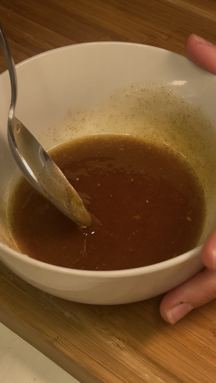 • In a small bowl, mix the melted butter, olive oil, maple syrup, brown sugar, cinnamon and lemon juice.