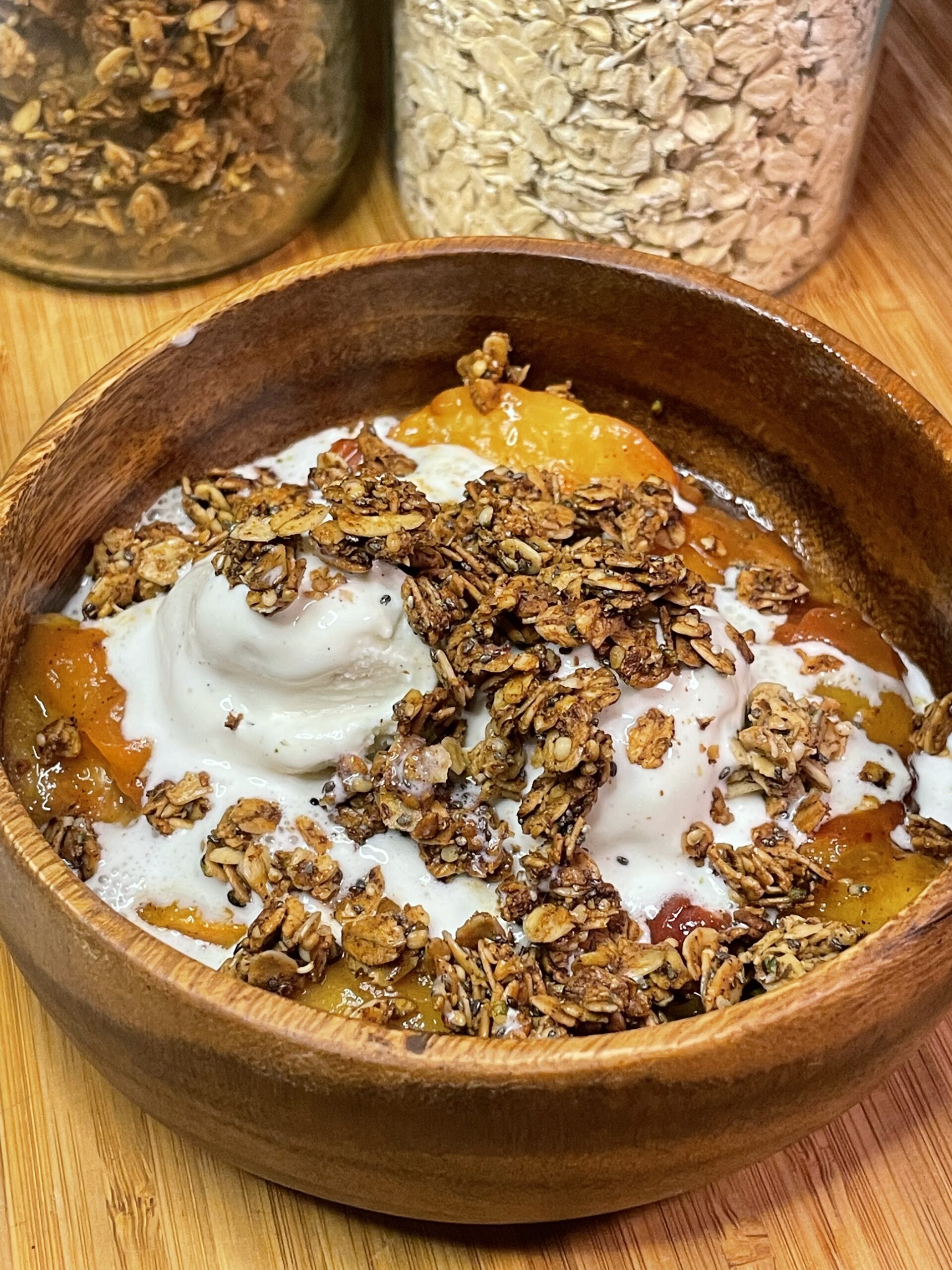 Keyword: carmelized, granola, ice cream, peaches, roasted