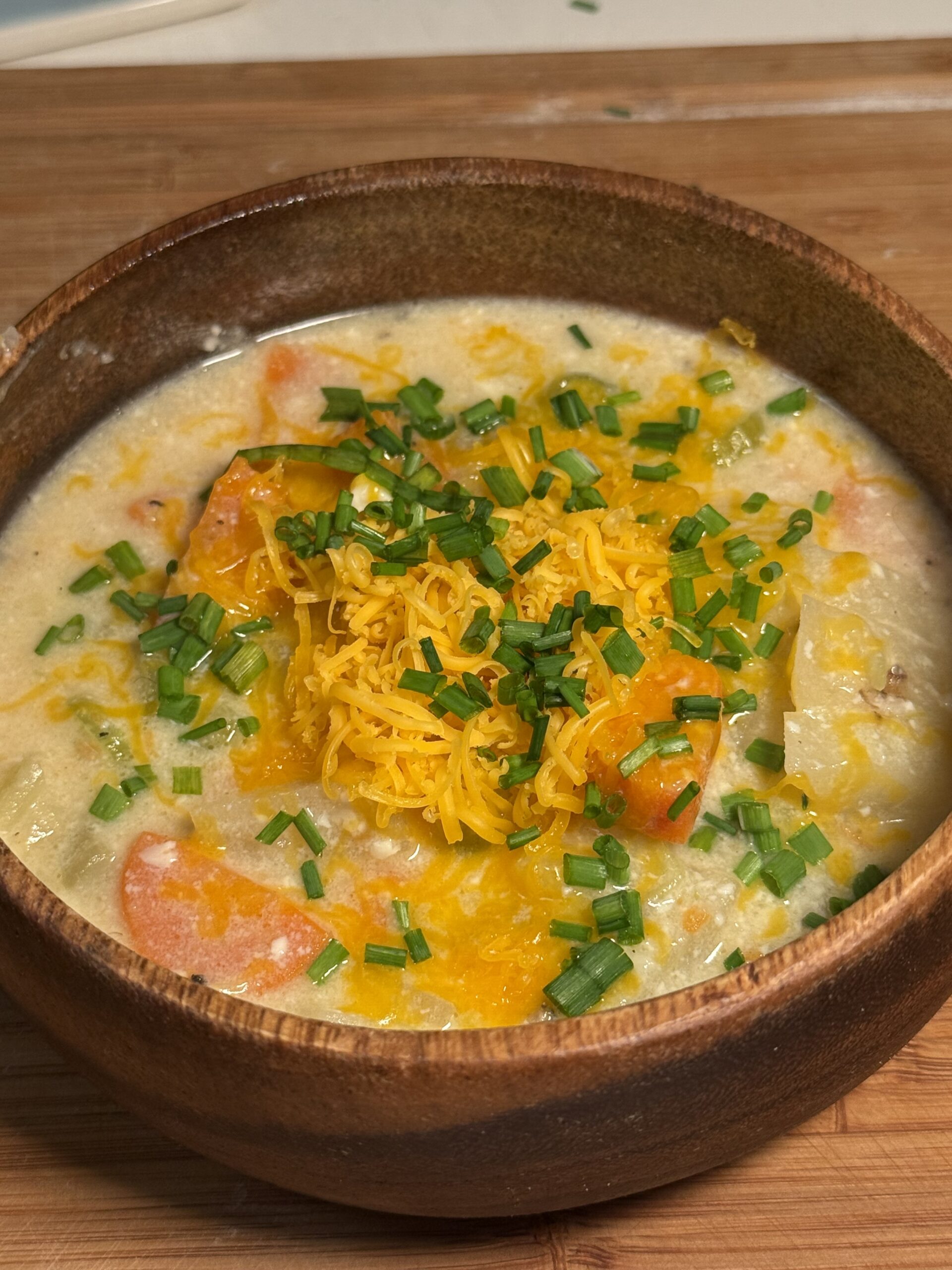 - Ladle into bowls and top with fresh parsley and shredded cheddar cheese. Enjoy warm