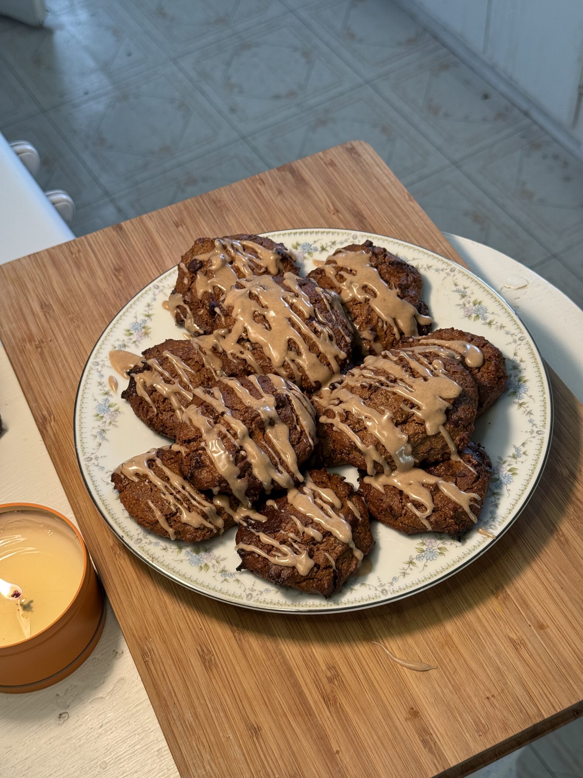 Pumpkin Spiced Almond & Hazelnut Butter Cookies with Dark Chocolate Chunks & Cinnamon Glaze