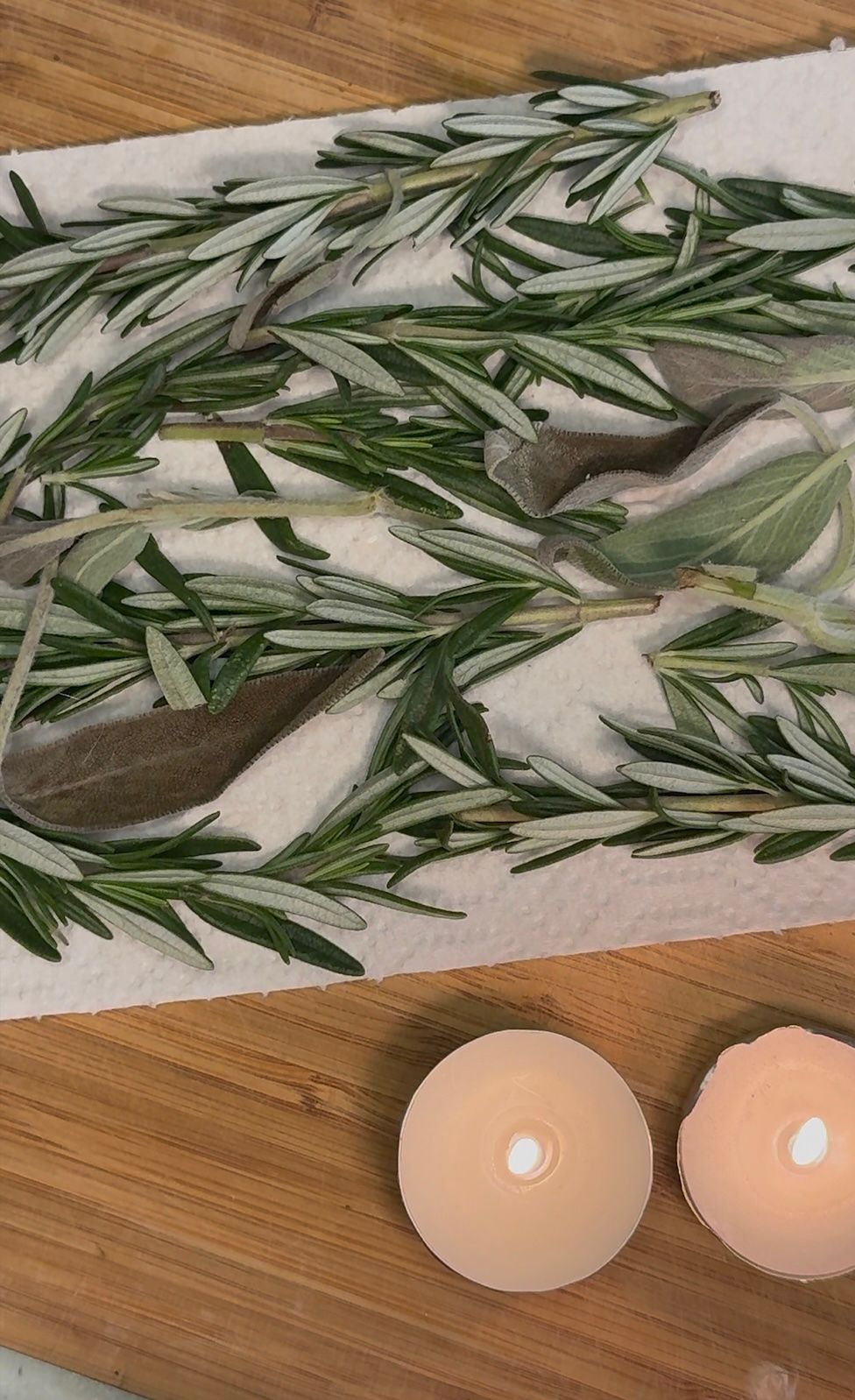 - Prepare the herbs: Rinse the rosemary and sage, then pat completely dry.